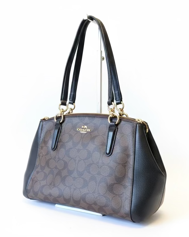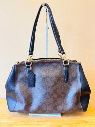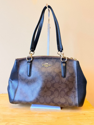 - Coach Peyton Signature Double Zip Carryall Purse - Black and Brown