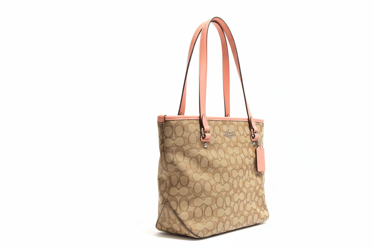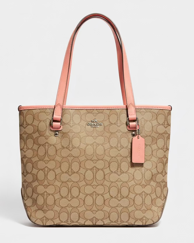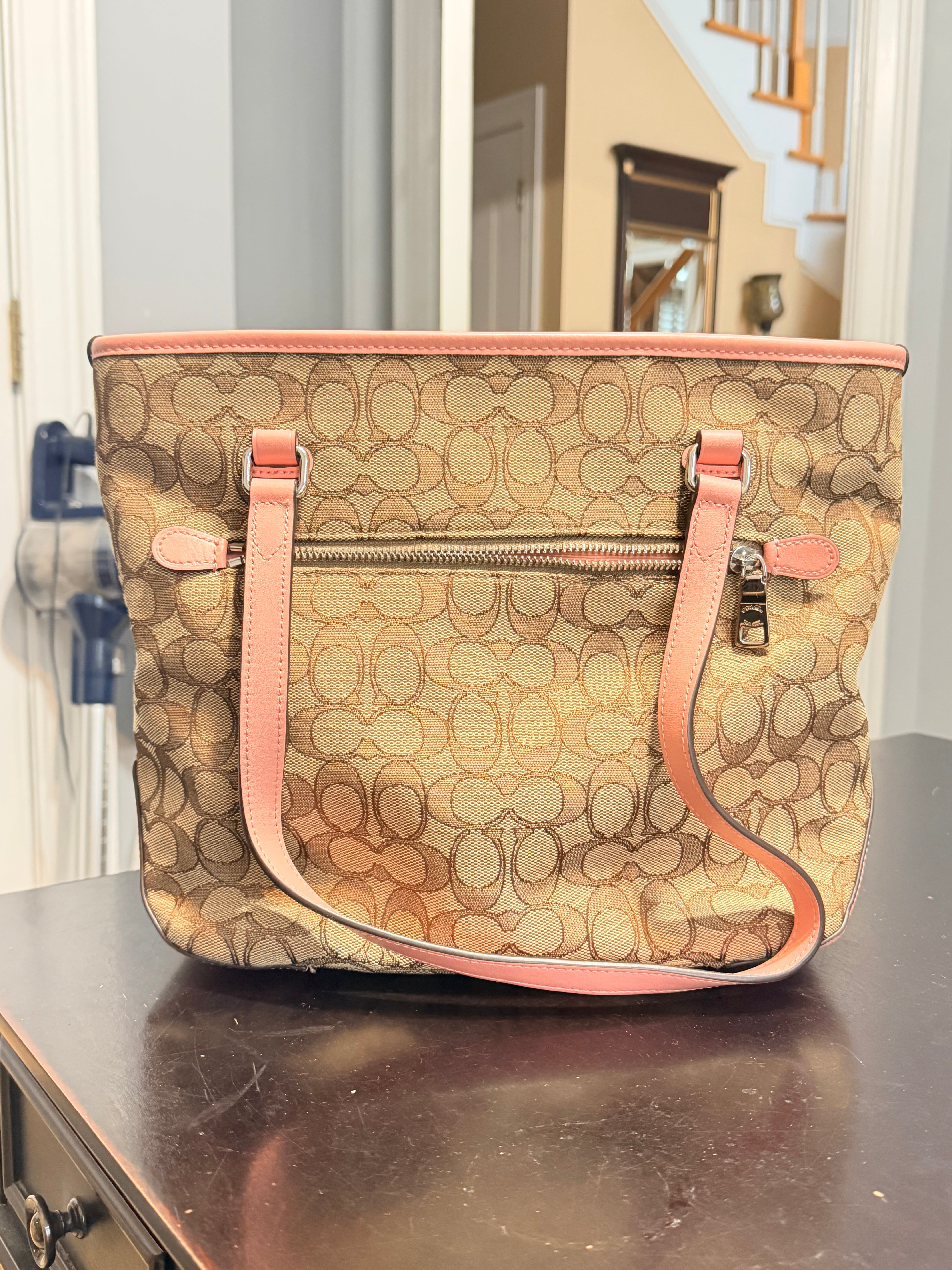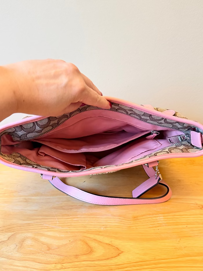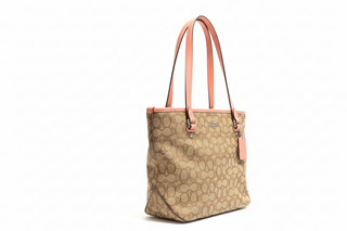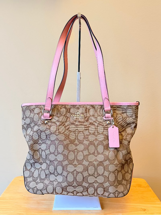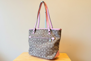 - Coach Signature/Monogram Canvas Shoulder Bag - Pink and Brown