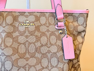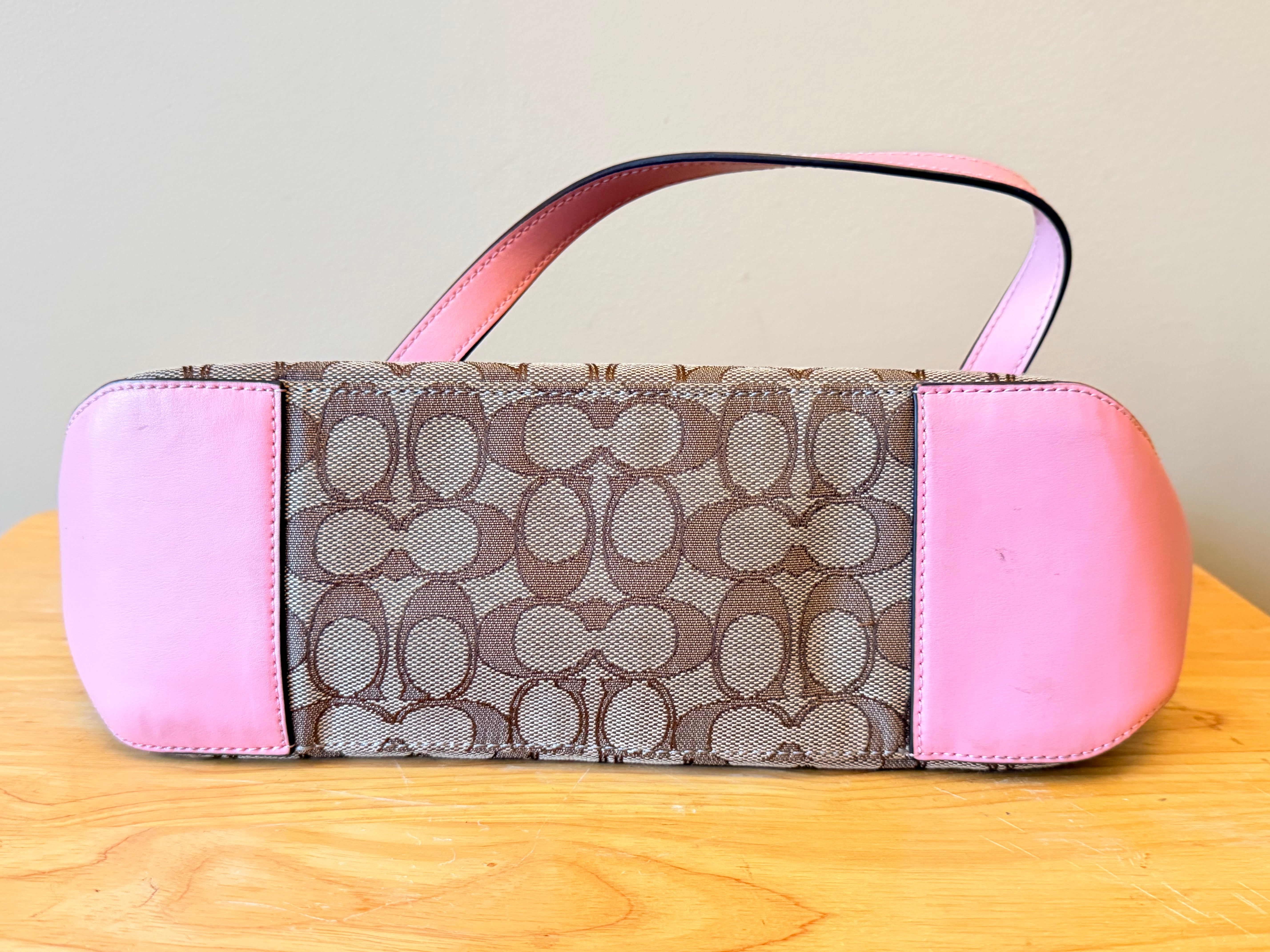Coach Signature/Monogram Canvas Shoulder Bag - Pink and Brown
