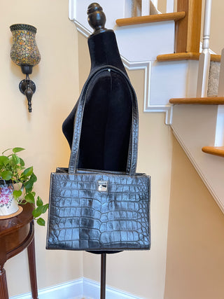 - Dooney & Bourke Black Leather Shoulder Bag - Crocodile Pattern