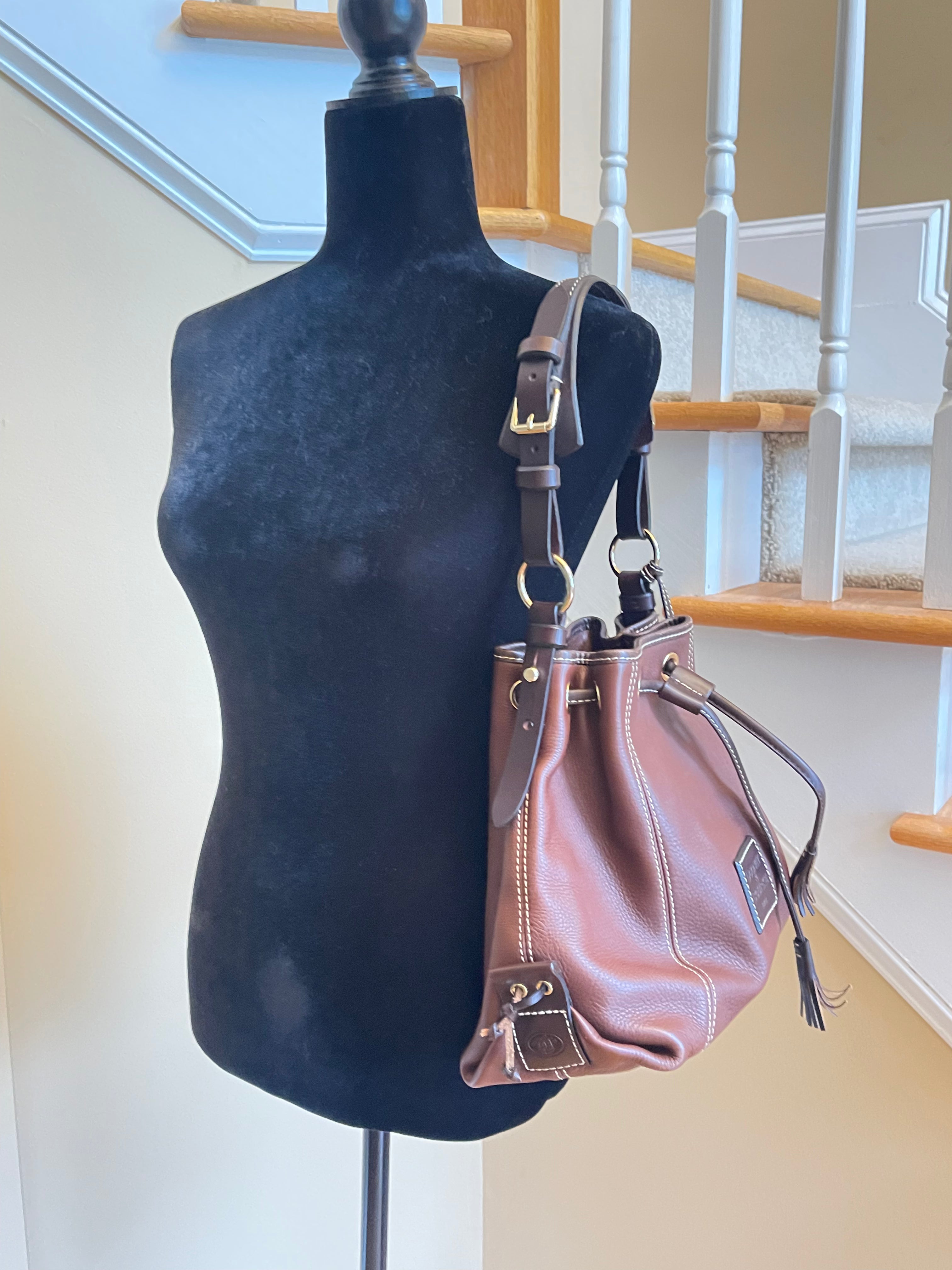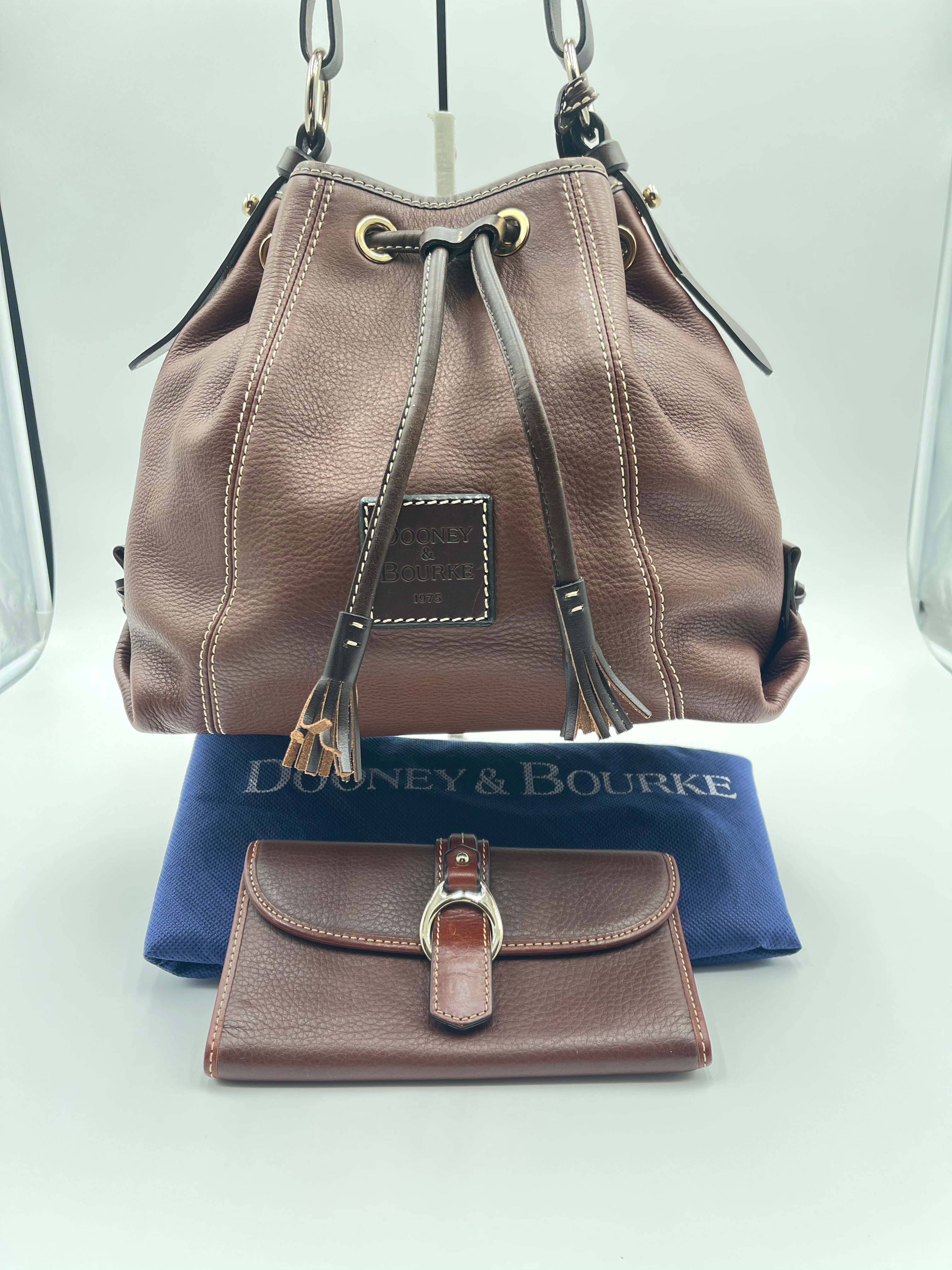 - Dooney & Bourke Drawstring Shoulder Bag in Pebble Brown Leather